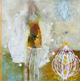 I work in series that can start as a concept of the mind, an idea, a thought, a vision of a finished work, or it can begin as an emotion, a feeling, a process of the heart. When I work on a theme, like stripes for example, I explore it in oil, acrylic, and encaustic, working figuratively and abstractly until it exhausts itself or leads to another theme. I apply what I’ve learned from working with shapes, forms, and lines in my abstract paintings to finding the simplicity that is needed for abstracting a figure. Similarly, my abstract work profits from my figurative experience.